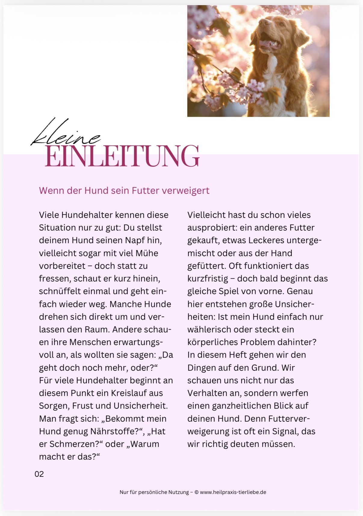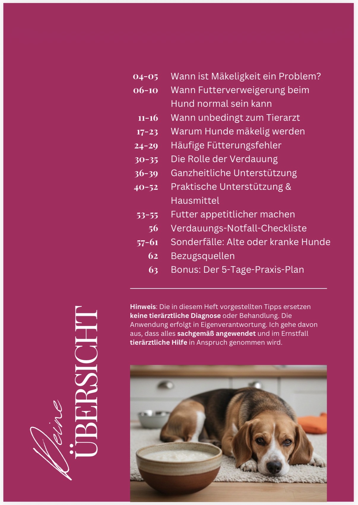 Dieser praxisnahe Ratgeber hilft dir, das Verhalten deines Hundes richtig einzuordnen und gezielt zu unterstützen – egal, ob es sich um harmlose Mäkelei, Alterserscheinungen, gesundheitliche Einschränkungen oder besondere Phasen handelt. Damit du nicht länger im Dunkeln tappst, bekommst du bei mir das ganzheitliche Erfolgspaket für 19,99 € statt 24,98 € im Einzelkauf.