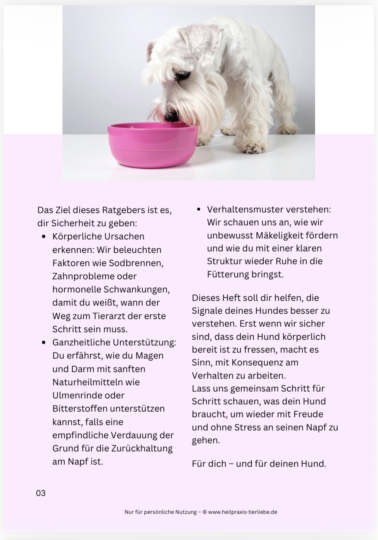 Du kaufst nicht nur ein Training, sondern einen ganzheitlichen Weg. Wir bringen wieder Freude und Struktur zurück in eure Fütterungsroutine – ohne Druck, aber mit Plan.